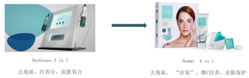 正是基于OxyGeneo商用仪器的灵感和它在临床上的成功,Zion博士创立了全球全新皮肤周期护理品牌Nowmi,采用多效协同的方式达到高效的皮肤护理方案,集去角质,皮肤“注氧”,超高浓度VC渗透,以及皮肤保护在短短5分钟内达到4合1,协同增效的的超级面部护理套装。